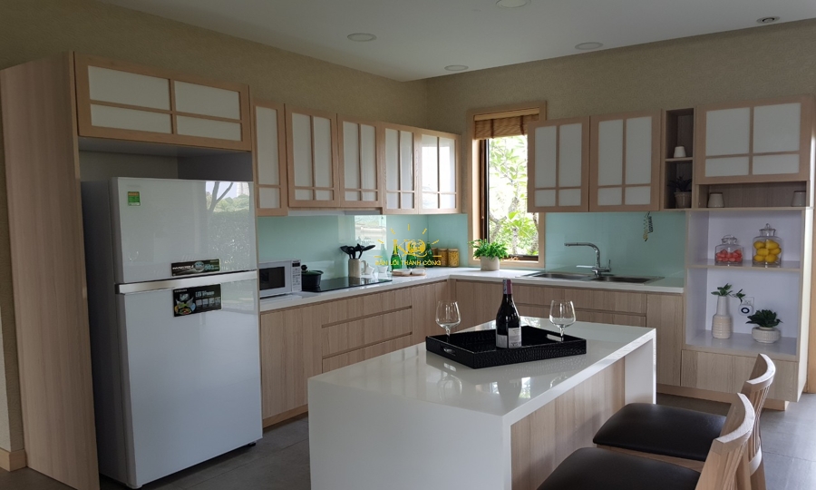 Không gian bếp rộng rãi, nội thất đầy đủ, tiện nghi