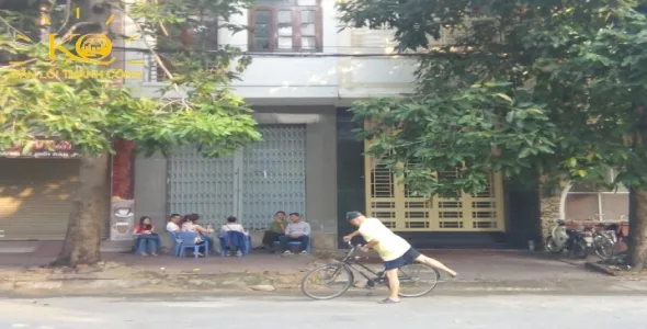 Cho thuê nhà nhìn từ bên ngoài thiết kế đẹp, dạng văn phòng. Có vỉa hè rộng, cây xanh 2 bên nhà mát thích hợp ngồi chơi trò chuyện.