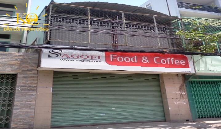 Nhìn căn nhà từ bên ngoài, mặt tiền rộng, tiện kinh doanh.